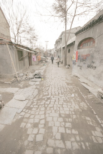 枣庄太平街拆迁前旧貌,房屋低矮,年久失修,道路坑洼不平。