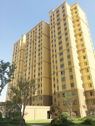 来到美星花园社区,8栋亮黄色的高层建筑围合成一个私密的院落,门口物业管理工作人员整齐列装,社区内卫生干净清爽,园林小品葱翠欲滴。据随行的中坚集团枣庄公司策划总监曹春荣介绍,美星花园于2017年5月10日到25日已整体交房,整体1178户。社区内最大亮点即是人车分流,地下两层停车,车辆集中停放,最大限度保证住户的车辆畅通出行以及人身安全。当年“脏乱差”的太平街,如今已经成为美丽的宜居小区。