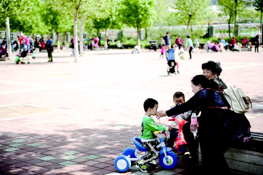 雁翔苑小区内绿树成荫,业主在广场上活动。(资料片) 本报记者 戴伟 摄