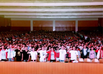 5日下午聊城三中举行的高考出征誓师大会。 本报记者 张跃峰 摄