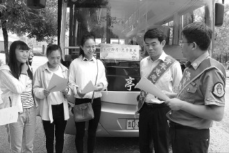 高考期间,为给广大考生提供良好的乘车环境,山亭公交公司开通了“高考服务车”活动,这也是该公司连续第5年开展此项爱心活动。