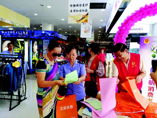 普及文明消费理念,倡导人人争做文明消费者。在银座中海店和佳乐家超市入口,工商志愿者们在银座黄河店门口设立咨询台,发放创城知识明白纸、文明消费倡议书、消费警示等材料,现场接受咨询150余人次;活动中还向广大消费消费者发放了环保的文明消费购物袋,提倡使用环保购物袋;同时,对乱插队等不文明消费行为进行了劝导。