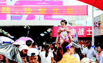 人气特旺,家长把孩子举过头顶。 本报记者 李岩松 摄