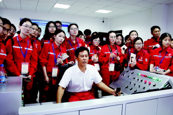 大学生了解油田生产流程。 通讯员 柳和 摄