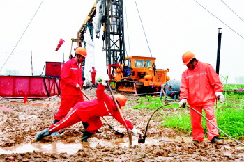 8月3日,在鲁明济北采油管理区曲9-606井作业现场,生产指挥中心现场调度陈茂辉正带领员工,利用潜水泵进行排水,以确保这口作业井能够及时投产。据了解,入夏以来,高温、雨水天气持续交替,给胜利油田一线生产带来了诸多困难。面对严峻的生产形势和严酷的环境考验,济北管理区加强生产现场的监督、施工方案的运行、措施效果的跟踪工作,确保各项生产管理工作高效落实。为确保雨季生产安全,机关部室、基层干部下沉到一线班组跟班劳动,确保各项生产管理工作高效落实。