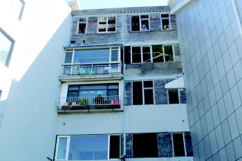 市南区综合行政执法大队八大峡中队执法人员上个月在巡查时,发现巫峡路25号某企业一处6层楼的建筑正在进行全面施工。执法人员立即向相关负责人落实是否办理了施工手续,并仔细对照施工图纸对施工现场进行了查看,发现该楼体中间部位第四、五、六层并未按照规划图纸进行建设,而是在本应是消防通道的部位加盖了9间总面积达180平方米的违法建筑。