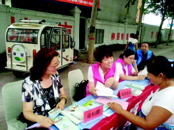 妇联主席刘素芹(左一)在现场接受群众咨询。