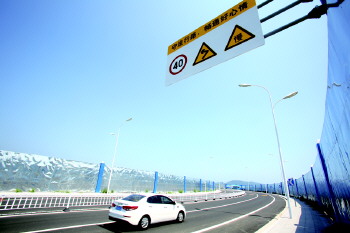 目前,刘公岛路的交通标志、标线均已设置完毕。交警部门除了安装了路中央隔离护栏、交通指示标牌,还把弯道路段的道路白实线改为震荡标线。这种震荡标线看起来与普通白实线无异,但车辆若压线行驶,车轮会因震动而发出嗡嗡声,继而能提醒司机注意安全。