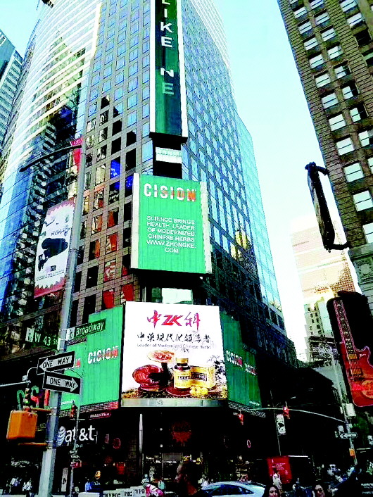 ◤中科品牌携国药灵芝亮相纽约时代广场。