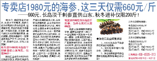 专卖店1980元的长岛淡干刺参,为什么我们只卖660元!