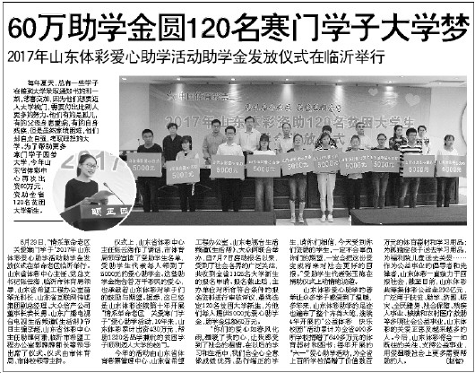 2017年山东体彩爱心助学活动助学金发放仪式在临沂举行