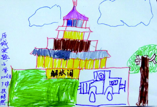 8月26日一早,我和妈妈来到解放阁等待同学们,参加齐鲁晚报组织的“跟着课本去旅行”解放阁一站。以前坐公交经过解放阁我就问妈妈解放阁是做什么的,妈妈告诉我它是纪念解放济南的纪念馆,我没明白却很好奇,但是一直没有机会进去看看,今天在导游老师的介绍下,我终于知道解放阁是济南战役的纪念馆,我们仔细听导游老师的讲解,并观察了里面陈列的物品,不仅有衣服、水壶、旗帜等,还有很多牺牲战士的名字,看了之后我很震撼。这次活动让我更加懂得没有革命先辈的牺牲就没有我们现在的美好生活。我会好好珍惜今天的幸福生活,好好学习,长大后为我们的国家做出贡献。