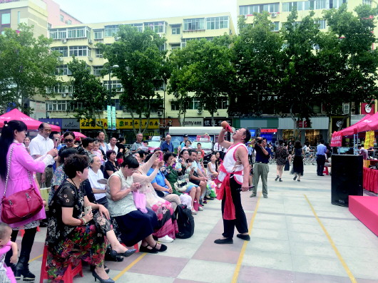 很多市民在观看了第一天的演出之后,纷纷表示没看够,第二天又早早来到广场等候。“看了两场都没看够,节目太精彩了,艺术家们的水平太高了。”节目结束之后,市民李阿姨拉着豫剧演员刘桂芬合影留念,还说希望以后文化节能多到社区,多到家门口。