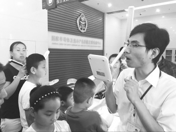 扫描电子显微镜分析室里。在一台百万倍电子显微镜前,孩子们兴奋不已。“这台显微镜不仅可以让空气中漂浮的PM2.5“现身”,还能让我们看到蝌蚪的牙齿、苍蝇的眼睛以及奶粉的颗粒。”实验室工作人员说。
