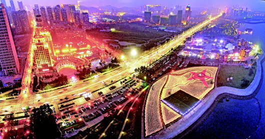 临沂北城新区夜景。 航拍员 刘笃龙 摄