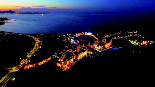 烟台海昌渔人码头夜景。 航拍记者 赵金阳 摄