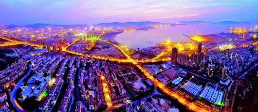 青岛黄岛夜景。 航拍记者 刘军 摄