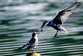 荷上共舞。 常庆田 摄
