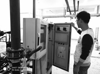和照相器材宿舍一样,恒馨苑的居民们今年也能过个温暖的冬天了。在地下停车库的换热站内,两台换热机组已经准备就绪,一侧的水箱严阵以待,技术人员正在检测换热设备。