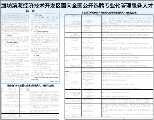 潍坊滨海经济技术开发区面向全国公开选聘专业化管理服务人才