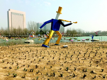 蓼河湿地公园处,郁金香已破土展叶。本报记者 孔茜 摄