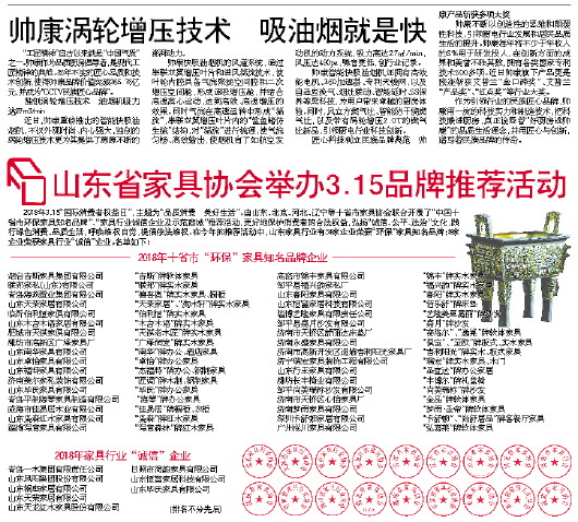 山东省家具协会举办3.15品牌推荐活动