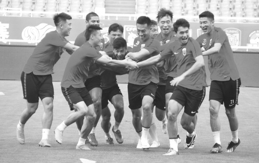 上港球员进行赛前备战。 本报记者 周青先 摄