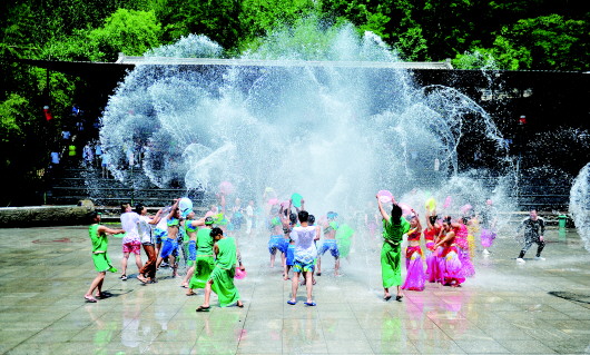 九顶塔民族欢乐园举办泼水节,高考生持录取通知书免费游园。 济南旅发委供图