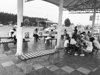 驾校训练场的遮阳棚下,学员们等候上车练习。