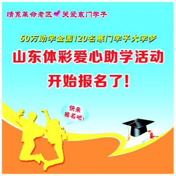 今年的活动由山东省体育彩票管理中心、大众网联合举办,活动采取网上报名的方式,报名者登录“山东体彩网”(www.sdticai.com)或“大众网”(www.dzwww.com)进入“情系革命老区 关爱寒门学子”山东体彩爱心助学活动网上报名平台进行报名,报名时间为2018年7月6日-8月14日。