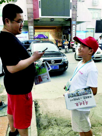 小报童“首秀” 来源:齐鲁晚报 2018年07月17日 14日上午,“金鼎华郡杯”2018齐鲁晚报小报童暑期营销秀活动在金鼎华郡营销中心举办开营仪式,百余名小报童及家长参加,开营仪式结束后,小报童们走上街头体验报纸营销,在实践中锻炼自己、收获成长。大图为小报童王子铭得到热心市民支持,卖出一份报纸;小图为小报童在开营仪式上展示才艺。 本报记者 李超 摄影报道 本稿件所含文字、图片和音视频资料,版权均属齐鲁晚报所有,任何媒体、网站或个人未经授权不得转载,违者将依法追究责任。