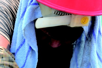 工地上的钢筋工通常将自己包裹的严严实实。不少施工者安全帽两侧还搭着毛巾,手上戴着厚厚的胶皮手套。“即便是高温天气,也要把自己包裹的严严实实。毛巾搭在耳边,不仅能遮挡太阳,还能及时擦掉脸上的汗。因为太阳晒得钢筋烫手,戴手套是为了防止手被烫出泡。”一位杨姓钢筋工说。