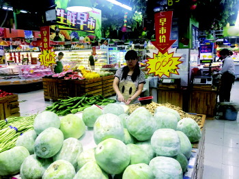16日,记者从张店柳泉路一家超市了解到,和一个月前相比,多数蔬菜的价格下降。“冬瓜0.65/斤、甘蓝0.9元/斤、黄瓜1.2/斤、茄子1.45元/斤、芹菜1.46元/斤……”据超市工作人员陈女士介绍,本地蔬菜价格从上月中旬开始下降,应季蔬菜都很便宜。“现在价格较高的多是外地菜,像扁芸豆、西兰花等,批发价稍高,但价格基本和往年持平。”陈女士说,别看菜价便宜,但销量并不高。“夏天蔬菜不易存储,市民随买随吃,超市担心当天卖不完,一般到了下午就只能低价处理。”