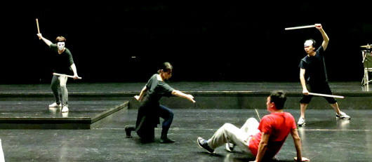 当日的排演虽然没有带舞美灯光,但演员的表演已基本能再现武陵渔人心中那个简单快乐的“桃花源”。韩国演员金宗范饰演的打鼓少年,敲击的是中国传统味道的鼓点。韩国演员催民宰饰演的桑竹,则再现了中国昆曲中《游园惊梦》的片段。