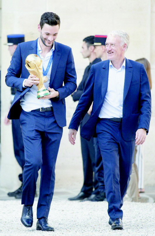 夺取世界杯冠军,德尚(右)顺理成章地续约。