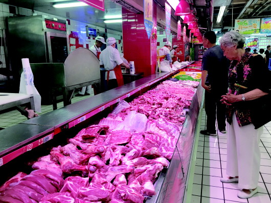 市民在洪家楼大润发选购猪肉。 本报记者 孙业文 摄