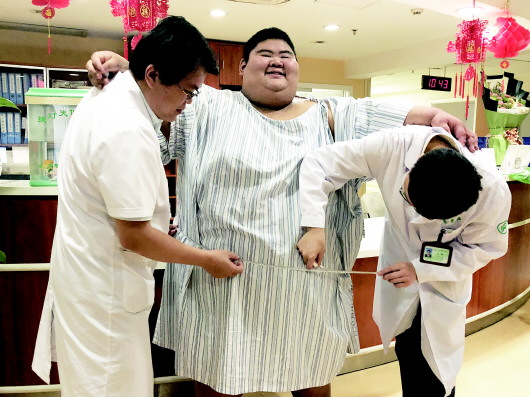 王浩楠最初的体重高达668斤,这让他有了很大压力。 院方供图