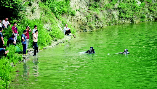 18日上午10点多,记者来到事发的砚池,此时公安、消防和潜水志愿者均已赶到现场,岸边还有不少围观的市民。虽然这里刚刚发生了人员溺水事件,但砚池里仍有不少游泳者,有的从岩体高处往池水里跳,还有的横渡整个砚池游到救援现场来看热闹,丝毫不觉得危险。