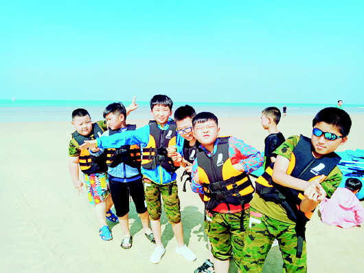 拿起枪,在一场真人CS大战中感受烽火硝烟;在龙湖北中国海公园的金色沙滩上,去开展户外拓展训练;一起巡游养马岛,追寻历史传说;到海边沙滩踏浪戏沙,坐上橡皮艇,亲自到海上乘舟破浪;到黑泥滩上,与渔民一起赶海拾贝……七天的夏令营里,孩子们全方位地去感触大海。