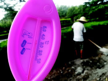 “热起来,肯定身体不舒服,胸闷,有中暑的感觉,想吐。根本离不开水,我们每个人都是带着一升左右的水杯,喝完了后,就去附近的工地要水喝。这不,你看我的衣服,已经湿透了,出汗多了就多喝水消暑,不然口干舌燥时间长了容易中暑。”王业广说,为了预防中暑,公司给送了绿豆汤和草帽,绿豆汤成了他们这两天最受欢迎的食品。