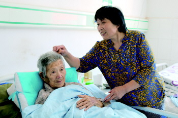 虽然张桂云因病所致手脚不灵,加之年迈体弱,但在孙爱平的精心侍奉下,老人病情基本稳定,几乎看不出她带有什么病色,没有一点异味。给婆婆梳洗、按摩、擦洗身子、修剪指甲……孙爱平无微不至。婆婆言语发音不清,可从她的眼神和表情上足以显现出对儿媳孙爱平的喜悦之情。