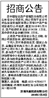 受中国信达资产管理股份有限公司山东省分公司委托,我公司将于近日对青岛玺宝来商贸有限公司等2户资产包项目进行公开拍卖。截至2018年5月31日,资产包债权本息总计54556.1万元,其中债权本金余额32886.3万元。