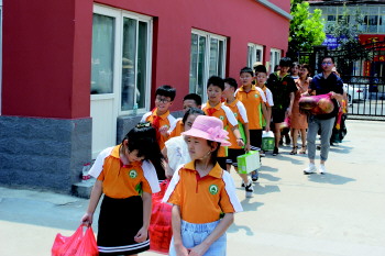 孩子们带着自己的“心意”走进敬老院。 本报记者 韩哲 摄