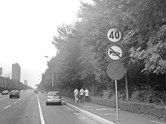 滨州城区黄河十路一段区域,路边立着限速40的提示牌。 本报记者 付玉成 摄