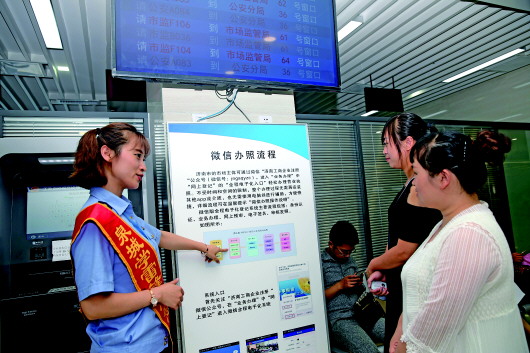 引导员向群众介绍微信办照流程。 历下区供图