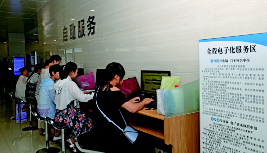 在此基础上,历下区市场监督管理局进一步加大信息智能化保障,先后增设了两台工商自助服务终端机,开辟了企业全程电子化自助服务区,完成了从申报到打印全过程的网上办理、机器出证。设置二维码一扫通,企业可通过手机扫描二维码,下载所有登记业务模板。增设两名引导员,指导帮助企业现场完善网上申报材料,通过审核后,现场办理。
