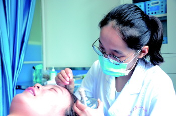 对准脉冲染料激光仪、轻轻地调试脉宽与能量参数……手术室里史先花按下开关,闪烁的激光打在患者脸上。“我研究生时读的皮肤学,但是受导师的影响,专业方向为皮肤美容。”从刚毕业的是青涩学子到如今的青年医生,她用5年时间完成了自己的华丽转身。