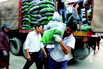 在得知有两辆运送清洁煤的卡车刚刚从山西晋城抵达村庄后,长庆社区主任陆雪峰匆忙撂下手中的水杯,迅速赶至清洁煤卸车现场。只见两大卡车煤炭已经稳稳停下,装卸工正不顾翻滚的热浪和炙烤的阳光,逐一将装有清洁煤的麻袋从卡车平稳卸放至地面上。