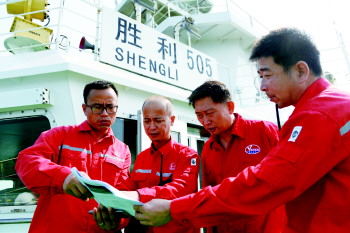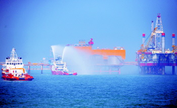 为检验海上油田突发事件应急处置能力,进一步强化三大石油公司区域应急联动,提高各救援力量间协调作战能力,7月20日,中国石化、中国石油和中海油在埕北油田渤西工区,首次举行海上应急联动演练。
