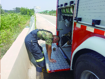 再高的气温、再毒辣的太阳,消防官兵都得随时准备穿上厚重的战斗服奔赴一线。25日中午,牟平消防大队龙湖中队,出动两车12人赶赴牟平区姜格庄镇酒馆村进行扑救任务。